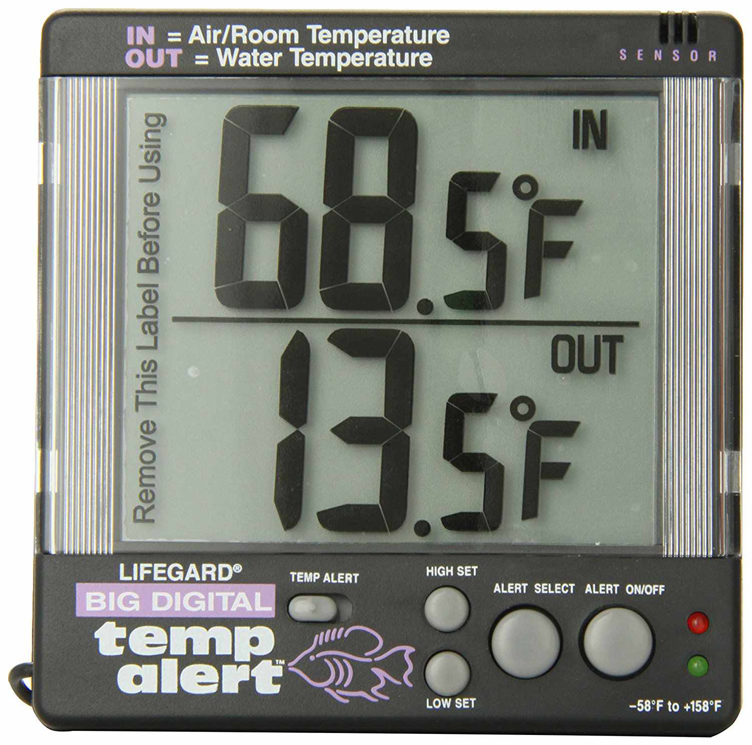 数字温度计由一个放置在水族箱水中的探针组成,探针可以永久或暂时地与水族箱外的数字显示器相连。有些是通过无线连接的,有些则是用一根线将探头物理连接到显示器上。