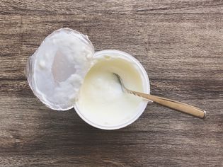 当橄榄油被倒进沙拉碗里时,狮子狗坐着抬头看