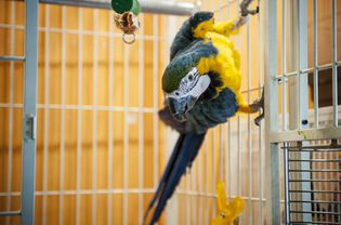 为了不让你的鸟咬新漆的笼子,试着把栖木、绳子和其他可以让你的鸟抓住的东西用铁丝绑在笼子的两侧。这些将作为“把手”,你的鸟抓住它的嘴,当爬上笼子边而不是笼子里的铁栏。所以基本上,你在真正的笼子栏杆上以不同的角度创造了替代的笼子栏杆。
