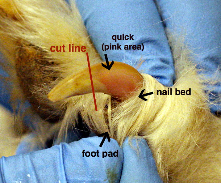 在浅色指甲上,很容易看出快。许多狗的指甲都是黑色或较深的颜色,因此不可能看到它们的指甲。指甲的解剖结构还是一样的。剪指甲的最佳位置是离指甲2到3毫米的地方。