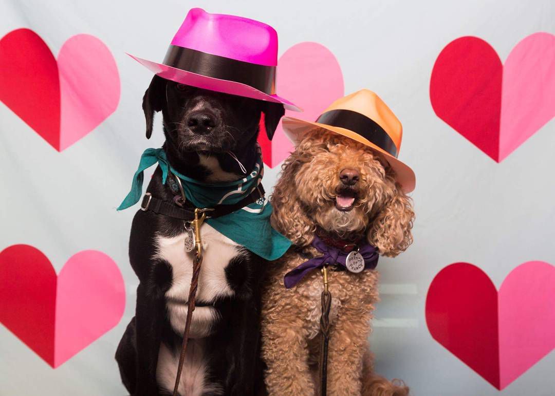 两只狗狗打扮成照相亭的样子@wagbooth / Instagram