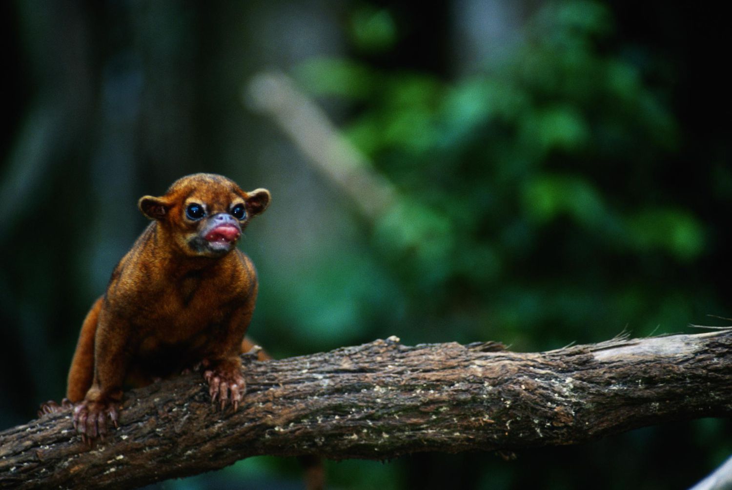 Kinkajous生活在从墨西哥南部到巴西南部边缘的雨林栖息地。