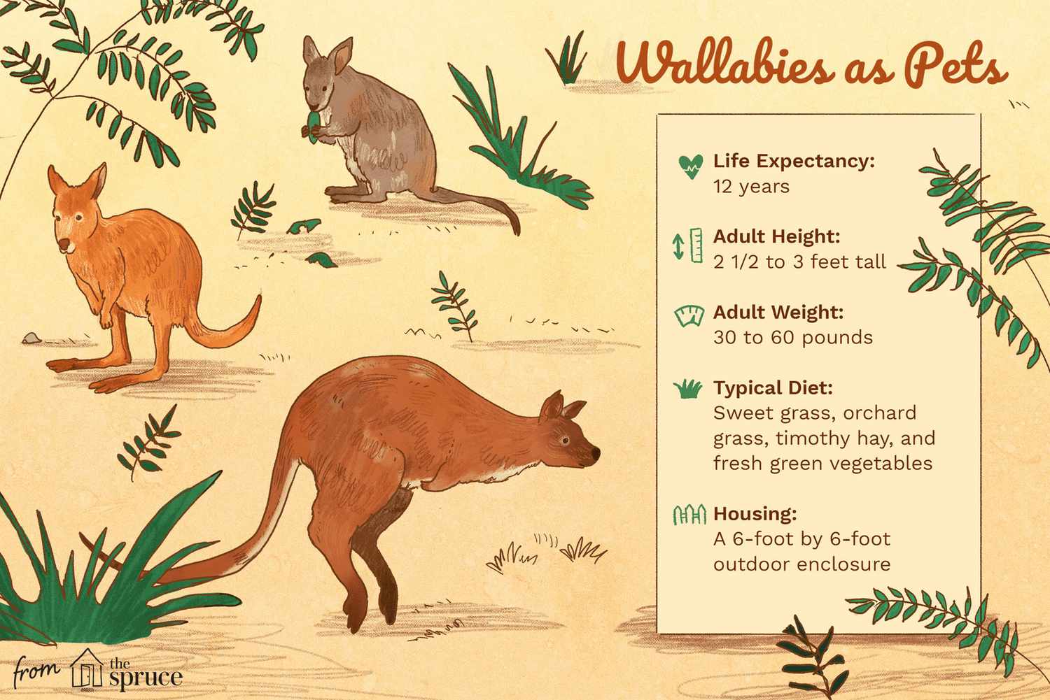 理想的小袋鼠围栏是一个宽敞的户外区域,有天然的地面基质,包括可再生的新鲜生长的草全年或从春季到秋季在温带地区。