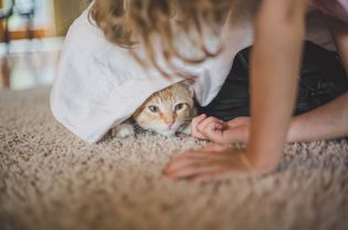 Use interactive play to build feline confidence. A fishing pole toy or the beam of a light pointer allows the cat to have fun with you but from a distance, which is not likely to trigger an attack. Training cats to do tricks builds confidence and helps improve the bond you share. You can useclicker trainingto communicate with your cat and show approval. When the cat's fear aggression focuses on another cat, use positive reinforcement and counter-conditioning techniques to reduce the cat-on-cat aggression.
